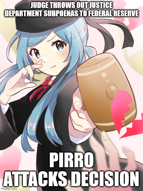 A federal judge has quashed two Justice Department subpoenas targeting the Federal Reserve, the Wall Street Journal reported Friday, delivering a significant legal victory to the central bank and a serious setback to the criminal probe that U.S. Attorney Jeanine Pirro had opened into Fed Chair Jerome Powell.