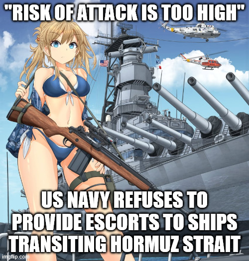 One week after Trump announced that the US would cover insurance for ships transiting the Strait of Hormuz, and would provide them with US navy escorts, Reuters reports that the US Navy has refused near-daily requests from the shipping industry for military escorts through the Strait of Hormuz since the start of the war on Iran, saying the risk of attacks is too high for now.