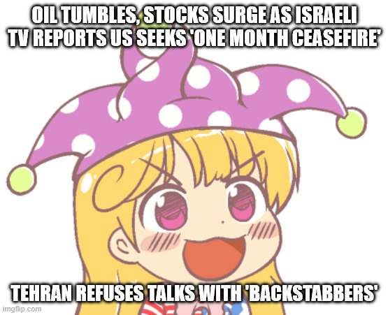 War Oil Tumbles, Stocks Surge As Israeli TV Reports US Seeks ‘One Month Ceasefire’; Tehran Refuses Talks With ‘Backstabbers’ March 24, 2026